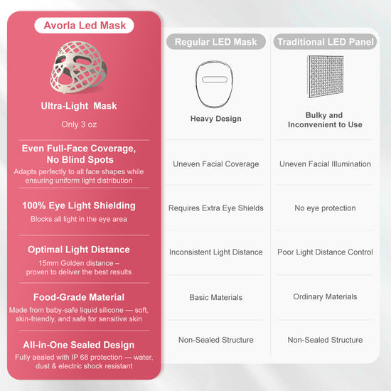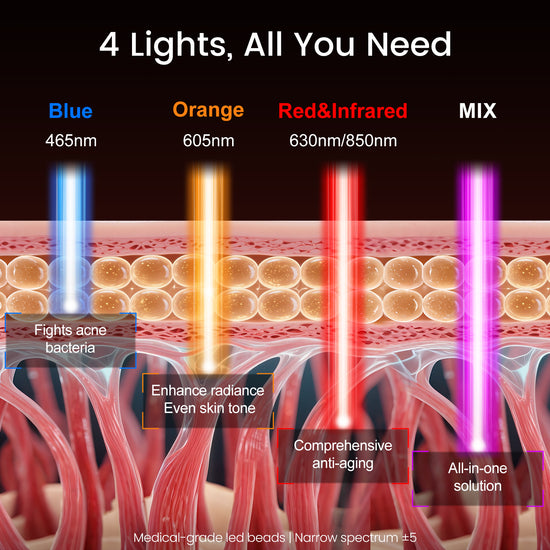 Red Light & Upgraded Infrared Light Therapy. Combining Red light and Infrared light in a LED face mask offers a broader spectrum of benefits, targeting both surface-level skin concerns and deeper tissues, reducing wrinkles and treating acne. Red light is visible light, and Near-infrared light is invisible.